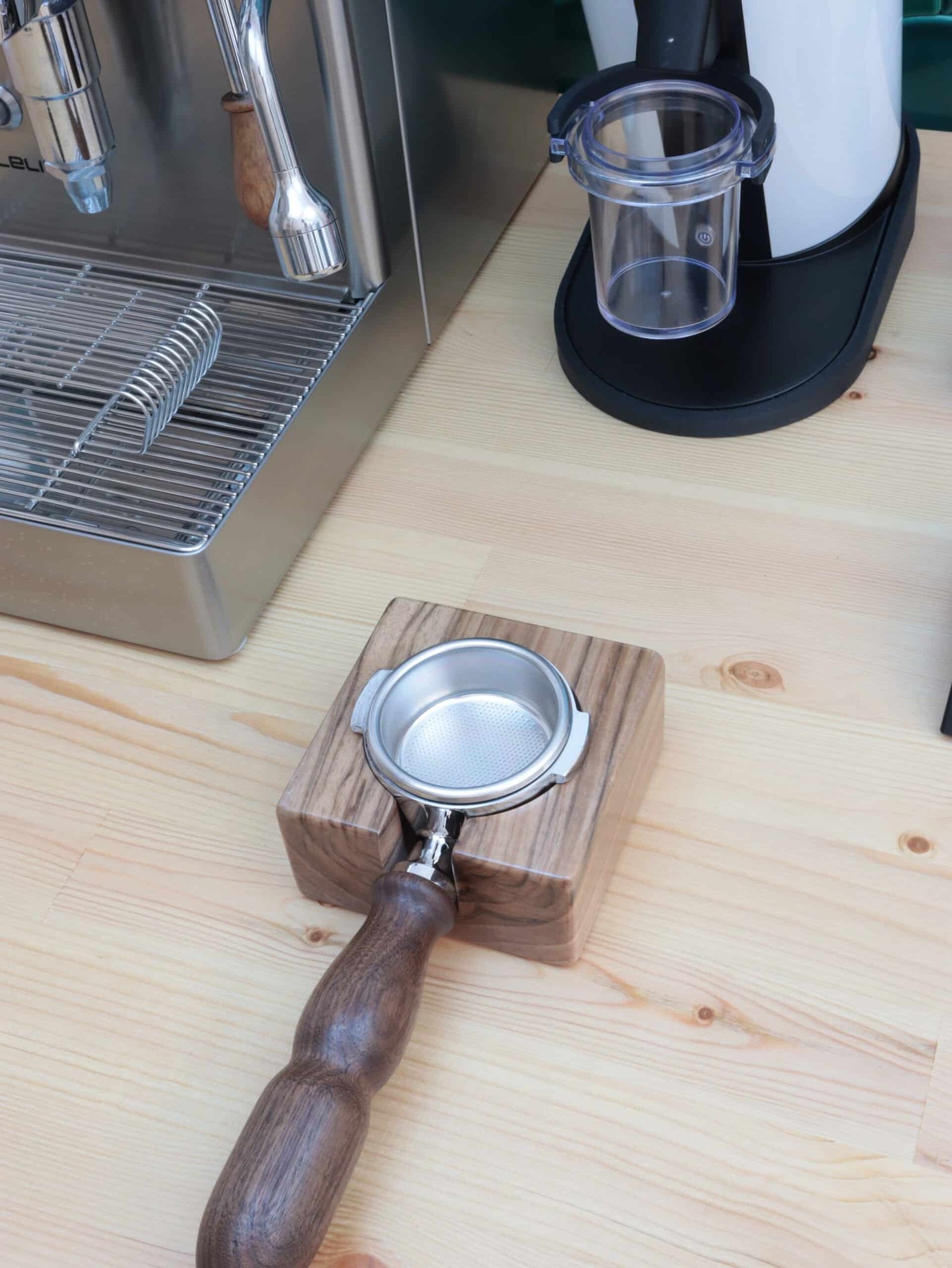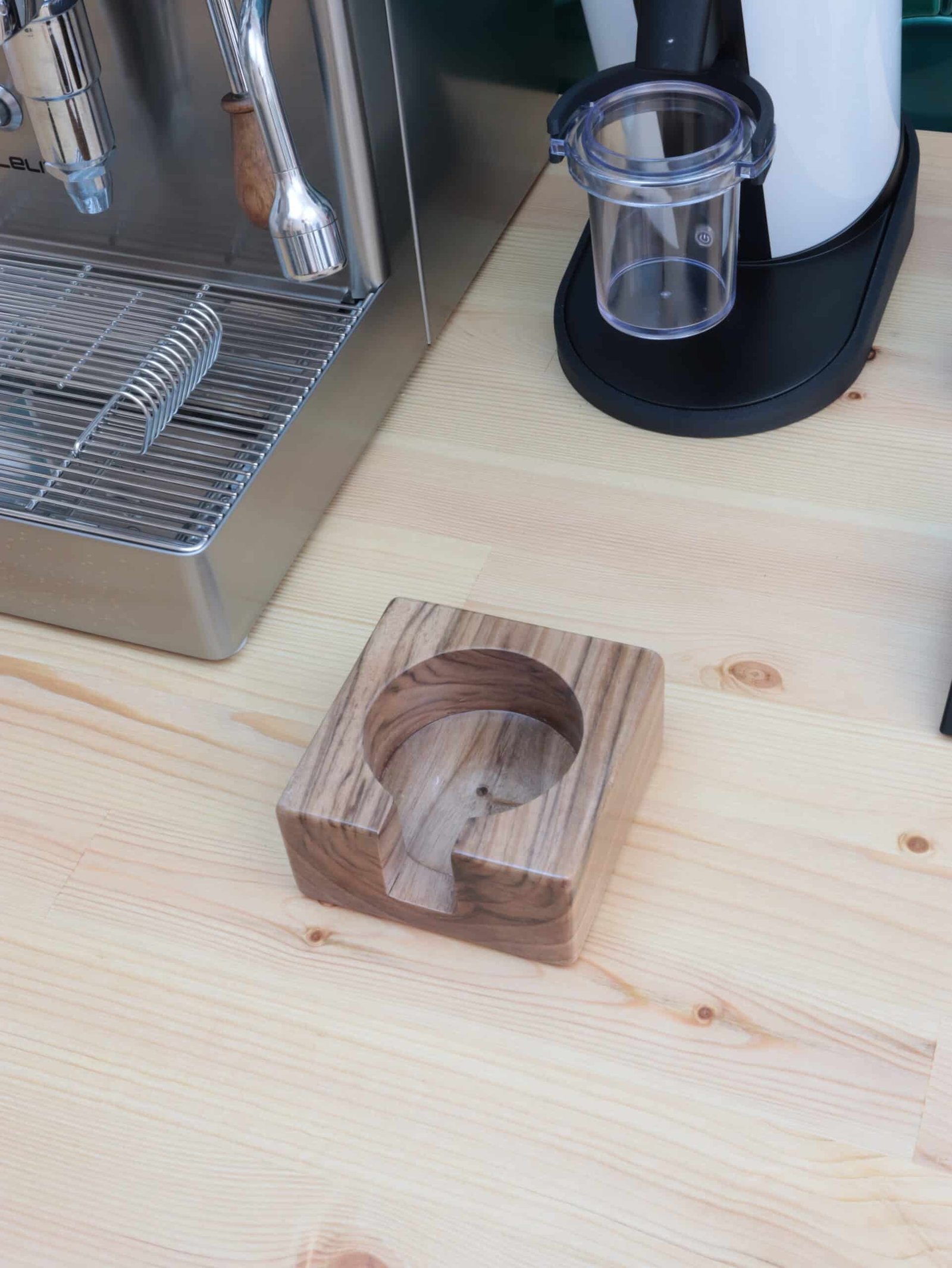 The Papel Espresso Portafilter Stand is meticulously crafted for those who savor every aspect of the coffee experience. Elevate your brewing station to impeccable organization with this stand, offering a level, stable, and pristine surface, all adorned with the unique warmth and elegance of walnut wood. Not only does this stand keep your portafilter and tamper clean, it safeguards them from unsightly dents and scratches.
