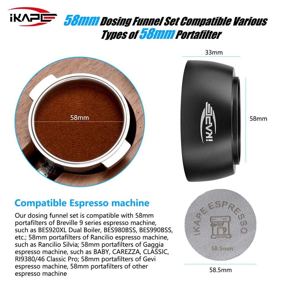 - 1 x IKAPE Magnetic Dosing Funnel (choose your size: 51mm, 54mm, or 58mm)