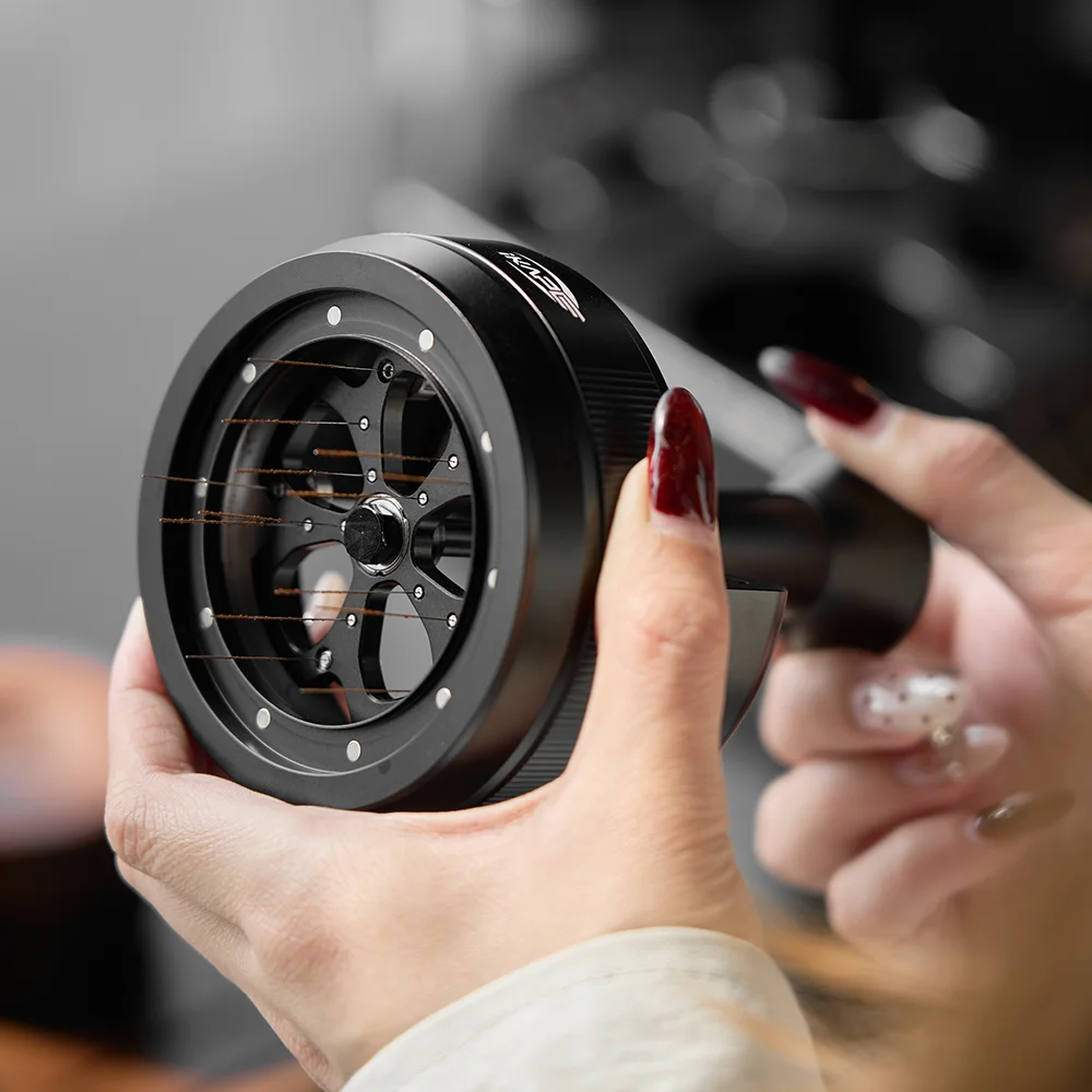 Unlike traditional espresso tools that rely on simple circular motion, the IKAPE One-Press WDT features a unique clover-leaf planetary gear layout. Each of the 14 precision-aligned needles rotates in a sophisticated orbital pattern, ensuring 100% filter basket coverage—no more “blind spots” or uneven extractions. With just a single press, you achieve a homogenized coffee bed, setting the stage for consistently even espresso shots every time. This tool is a game-changer for anyone serious about professional coffee tools and espresso accessories.