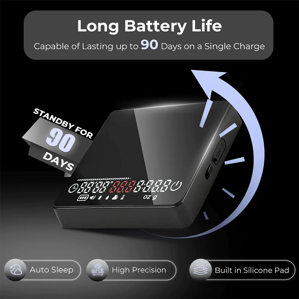 - Pour-Over Weighing Mode – Auto-tares for water weight, helping you nail your pour-over technique.