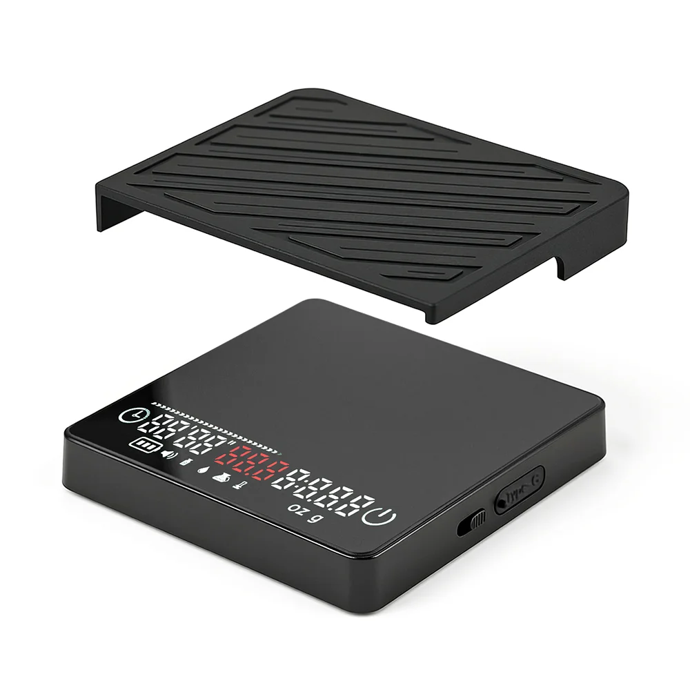 The SC35 is constructed from premium materials chosen for their performance and resilience. The plastic glass platform resists scratches and stains, while the silicone base and cover add extra protection and stability. Every detail is designed for the demands of professional coffee tools and specialty coffee gear, guaranteeing both style and substance in your daily routine.